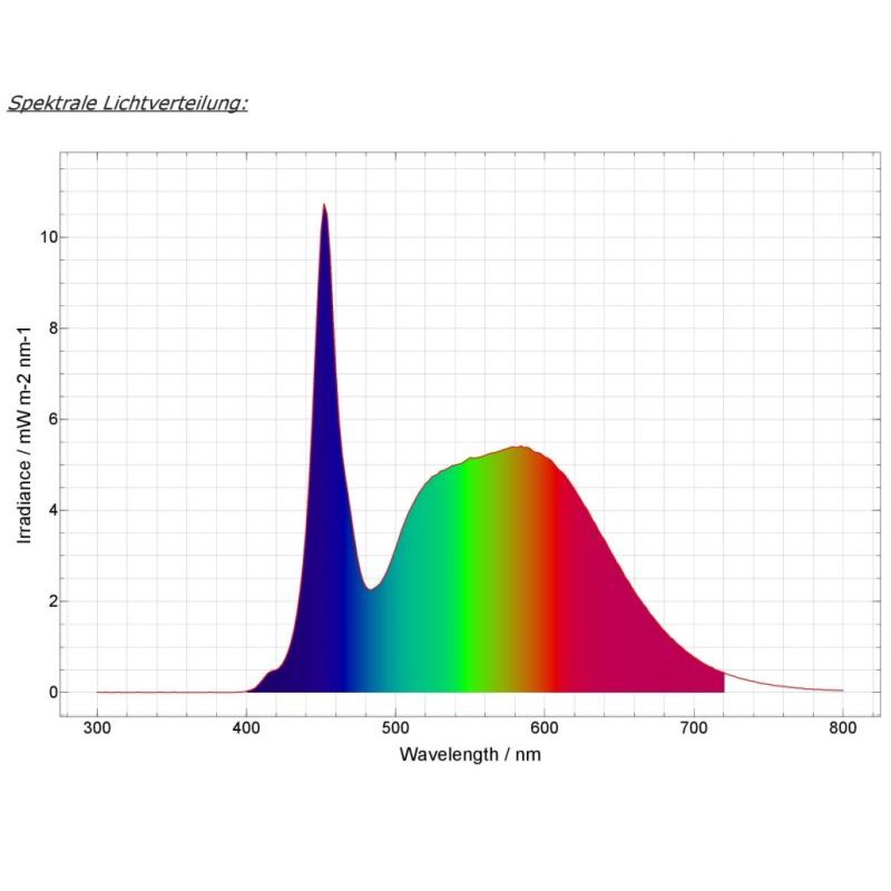 - 20x Vollspektrum Weißlicht SMD-LED – Erweiterter Farbraum durch Mischung von 10x Warm White LED und 10x Cool White LED mit einer resultierenden Farbtemperatur von 4.000 – 5.000 Kelvin