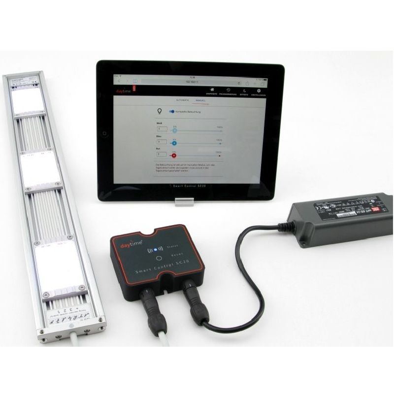 Der daytime Smart Control SC20 ist eine moderne Steuerungseinheit für LED-Beleuchtungssysteme von daytime. Der Controller wurde speziell für die Serien onex, matrix und pendix entwickelt und ermöglicht eine komfortable und präzise Steuerung der Aquariumbeleuchtung.